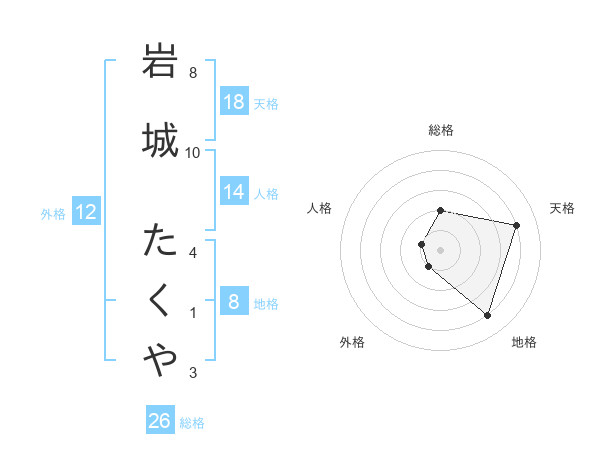 岩城 たくやさんを姓名の画数から五運を鑑定