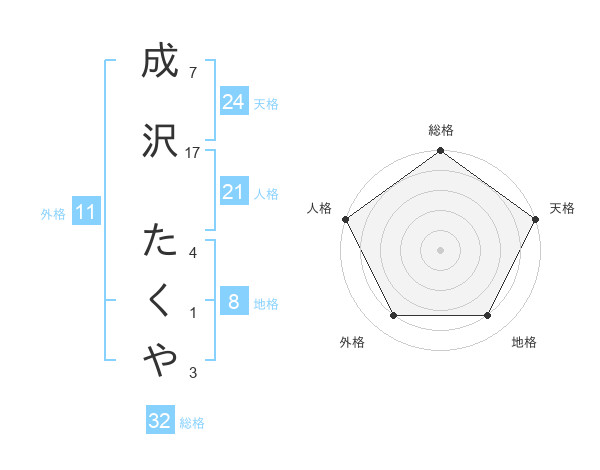 成沢 たくやさんの総格は32画の5点!