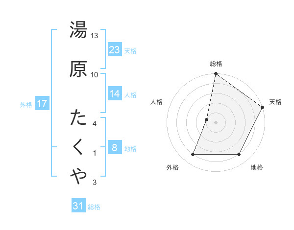 湯原 たくやさんを姓名の画数から五運を鑑定