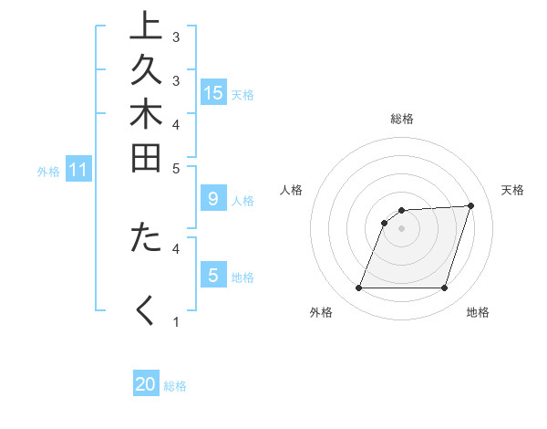 上久木田 たくさんを姓名の画数から五運を鑑定