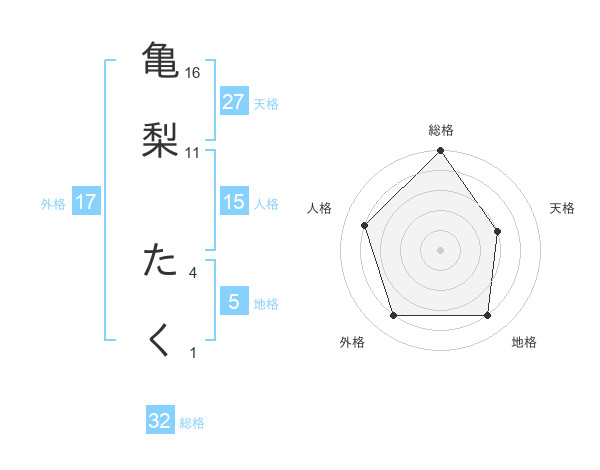 亀梨 たくさんを姓名の画数から五運を鑑定