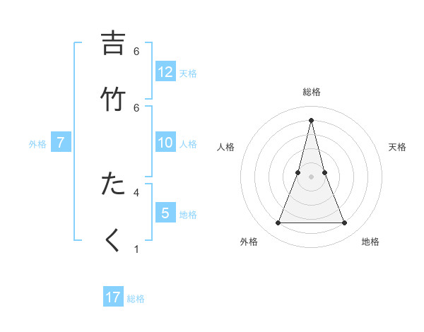 吉竹 たくさんを姓名の画数から五運を鑑定