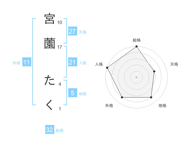 宮薗 たくさんを姓名の画数から五運を鑑定
