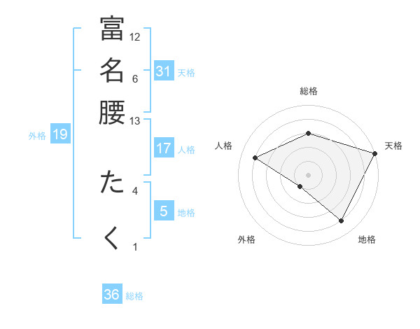 富名腰 たくさんの天格は31画の5点!