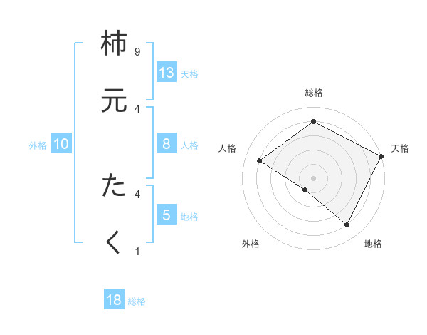 柿元 たくさんの天格は13画の5点!