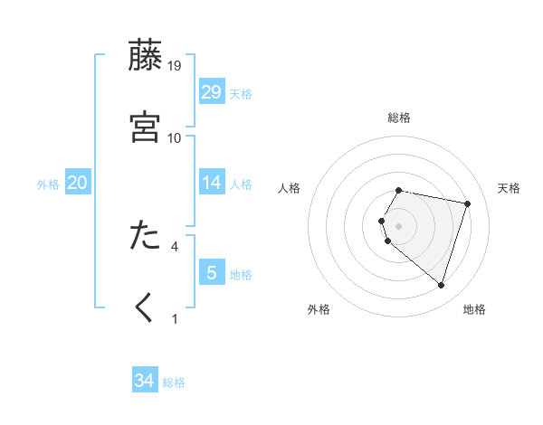藤宮 たくさんを姓名の画数から五運を鑑定
