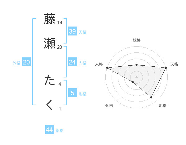 藤瀬 たくさんを姓名の画数から五運を鑑定