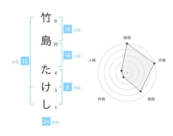 竹島 たけしさんを姓名の画数から五運を鑑定