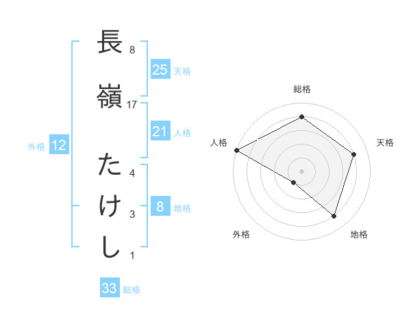 長嶺 たけしさんを姓名の画数から五運を鑑定