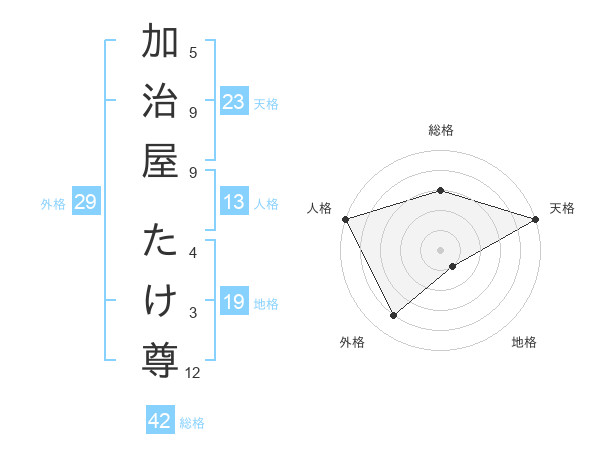 加治屋 たけ尊さんを姓名の画数から五運を鑑定