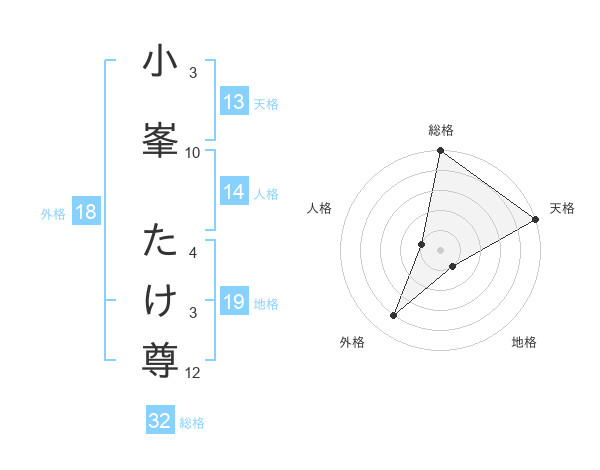 小峯 たけ尊さんを姓名の画数から五運を鑑定