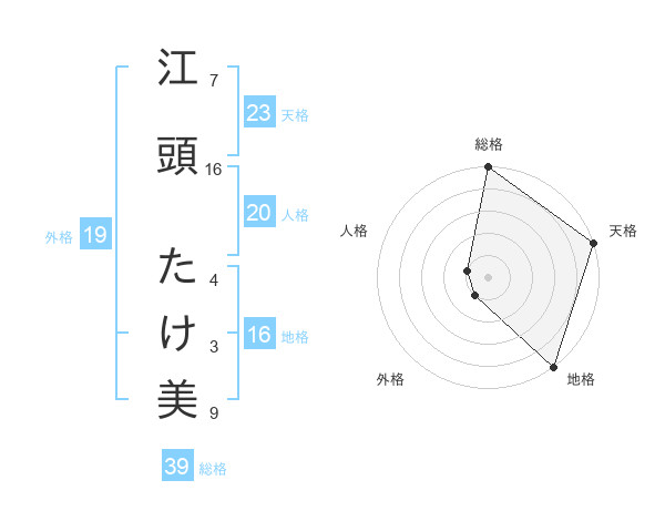 江頭 たけ美さんの総格は39画の5点!