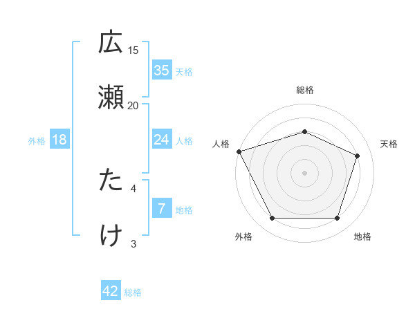 広瀬 たけさんを姓名の画数から五運を鑑定