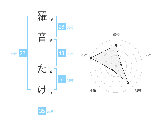 羅音 たけさんの総格は35画の4点!