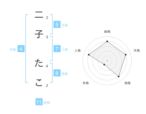 二子 たこさんの総格は11画の4点!