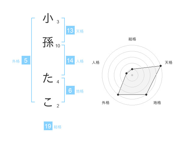 小孫 たこさんの天格は13画の5点!