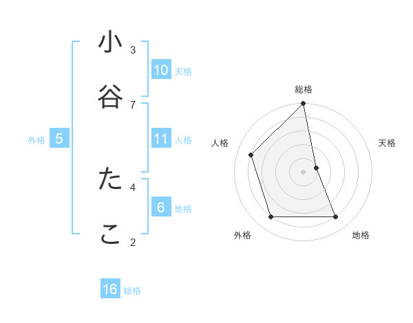 小谷 たこさんの総格は16画の5点!