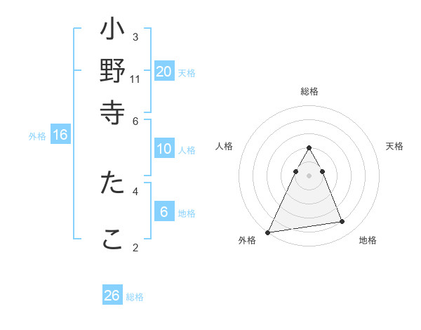 小野寺 たこさんの総格は26画の2点!