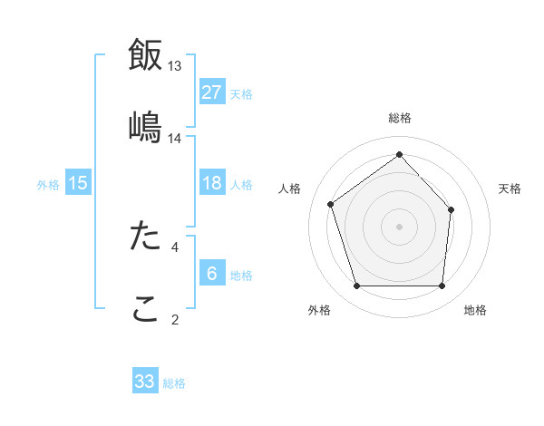 飯嶋 たこさんを姓名の画数から五運を鑑定
