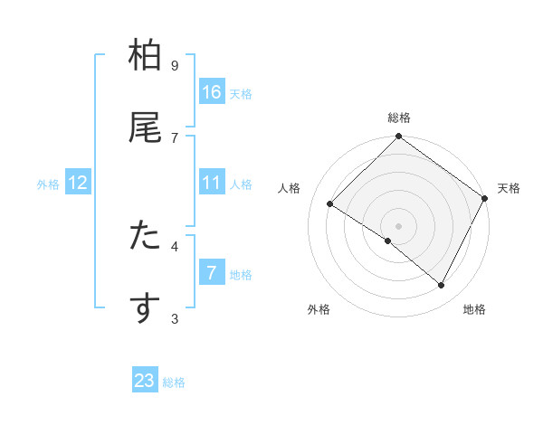 柏尾 たすさんの天格は16画の5点!