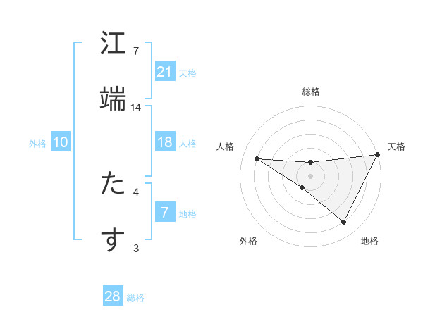 江端 たすさんの天格は21画の5点!