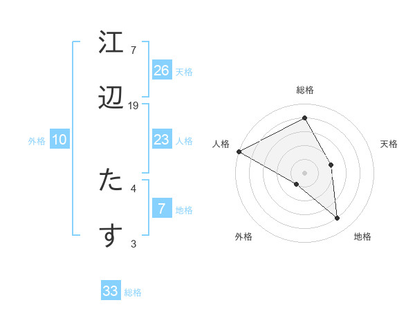 江辺 たすさんの総格は33画の4点!