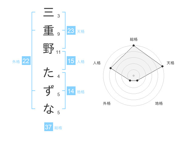 三重野 たずなさんを姓名の画数から五運を鑑定