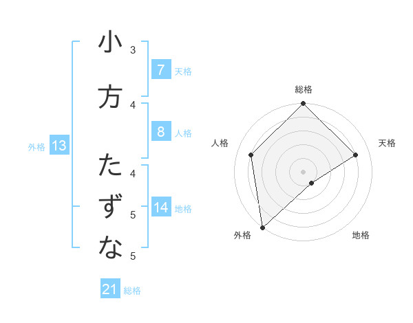 小方 たずなさんの総格は21画の5点
