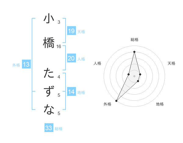 小橋 たずなさんを姓名の画数から五運を鑑定