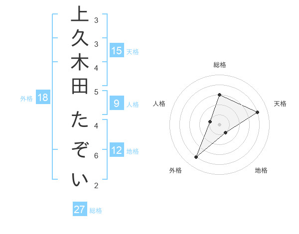 上久木田 たぞいさんを姓名の画数から五運を鑑定