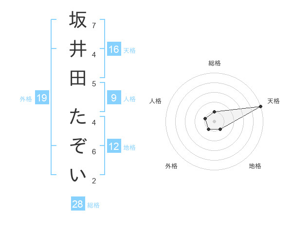 坂井田 たぞいさんの天格は16画の5点!