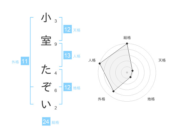 小室 たぞいさんを姓名の画数から五運を鑑定