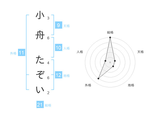 小舟 たぞいさんの総格は21画の5点!