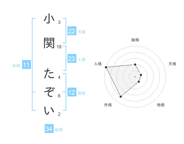 小関 たぞいさんを姓名の画数から五運を鑑定