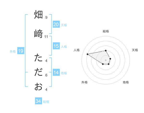 畑﨑 ただおさんの天格は20画の1点!