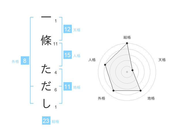 一條 ただしさんの総格は23画の5点!
