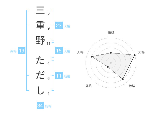 三重野 ただしさんを姓名の画数から五運を鑑定