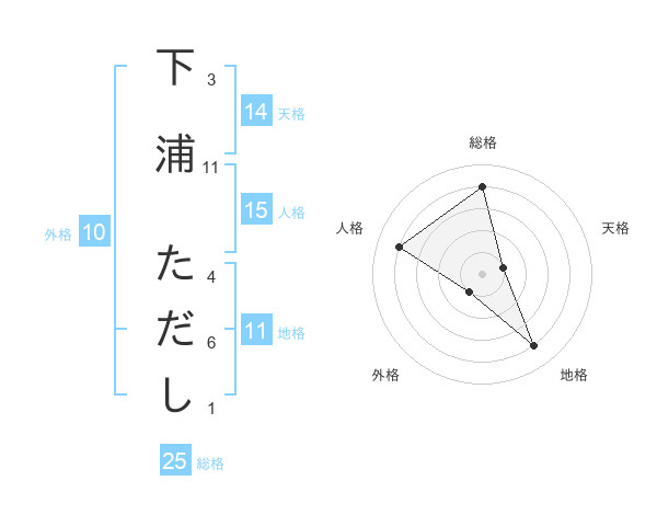 下浦 ただしさんを姓名の画数から五運を鑑定