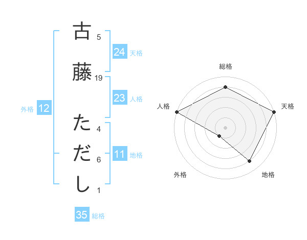 古藤 ただしさんを姓名の画数から五運を鑑定