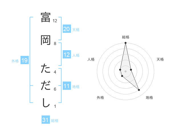 富岡 ただしさんを姓名の画数から五運を鑑定