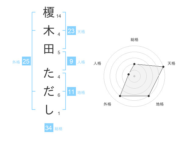 榎木田 ただしさんの総格は34画の2点