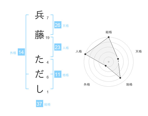 兵藤 ただしさんを姓名の画数から五運を鑑定