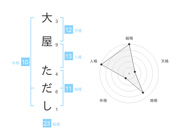 大屋 ただしさんの総格は23画の5点!