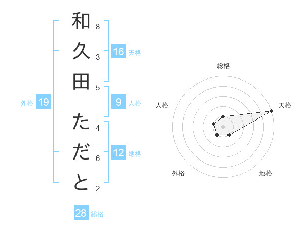 和久田 ただとさんの天格は16画の5点