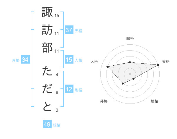 諏訪部 ただとさんの総格は49画の2点!