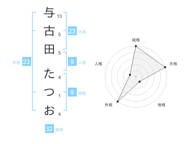 与古田 たつおさんの外格は23画の5点!