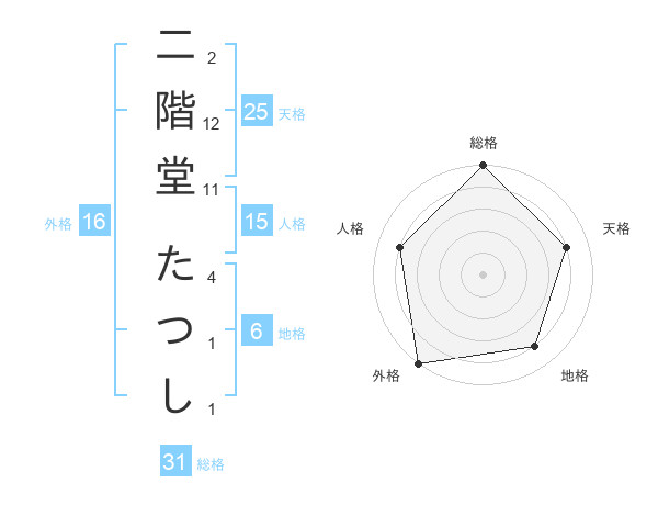 二階堂 たつしさんを姓名の画数から五運を鑑定