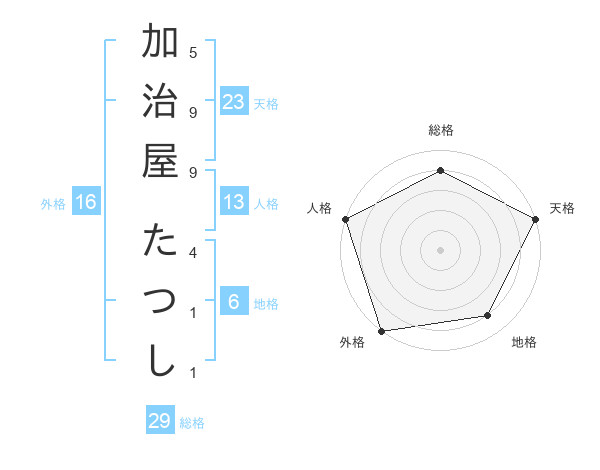 加治屋 たつしさんを姓名の画数から五運を鑑定