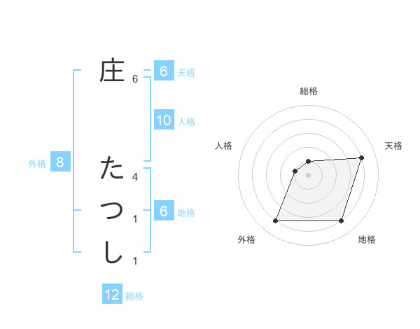 庄 たつしさんの地格は6画の4点!
