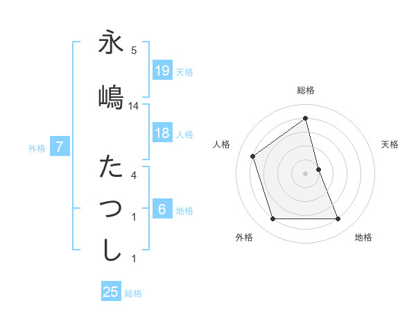 永嶋 たつしさんを姓名の画数から五運を鑑定